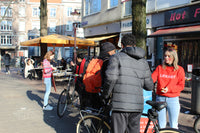 We startten op de start-up campus Dotslash in Utrecht en vervolgden onze liefdesreis naar het Gerard Douplein in Amsterdam. In bijpassende en zelfgemaakte (lekker duurzaam) Valentijns outfits deelden teamgenoten potjes deo uit met de kleuren van de regenboog. De gekleurde potjes staan symbool voor onze liefde voor iedereen met oksels.